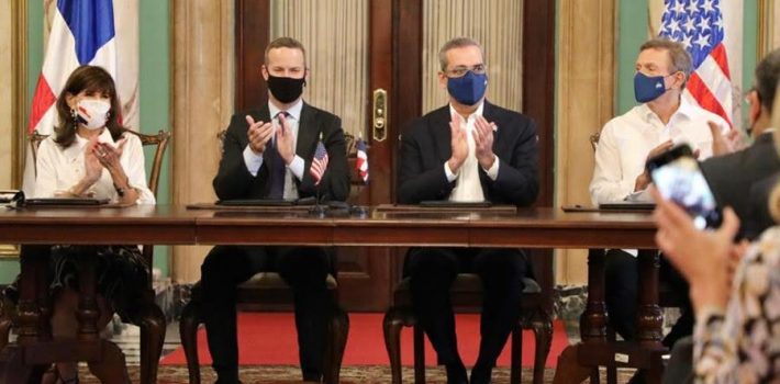 El acuerdo fue firmado, en representación de la República Dominicana por el presidente Luis Abinader y el canciller, Roberto Álvarez; mientras que por los Estados Unidos firmaron la embajadora Robin Bernstein y Adam Boehler, director ejecutivo de la Corporación Financiera de Desarrollo Internacional.