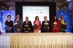 En representación de Francia, el embajador de dicho país en República Dominicana, Didier Lopinot en calidad de testigo y la directora de la Agencia Francesa de Desarrollo de Santo Domingo, Sandra Kassab.