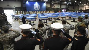 Cientos de soldados estadounidenses y surcoreanos se reunieron en un hangar en la base Osan para la ceremonia de repatriación, que incluyó un saludo de fusil y la interpretación de los himnos nacionales de Estados Unidos y Corea del Sur y endechas frente a las cajas metálicas cubiertas con banderas de la ONU.