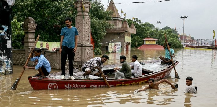 En Lucknow, capital de Uttar Pradesh, el gobierno local ordenó cerrar todas las escuelas por inundaciones.