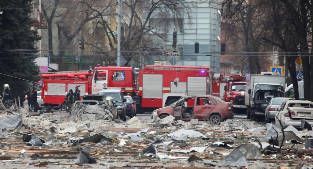 Imágenes de video de combates en Járkov, la segunda mayor ciudad de Ucrania, mostraron áreas residenciales bajo fuero de artillería y edificios de apartamentos sacudidos por fuertes explosiones.