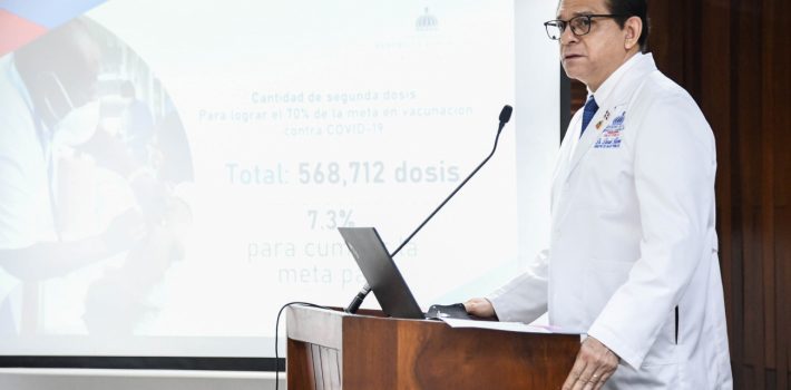 Durante la rueda de prensa, el ministro de Salud Pública también manifestó que en la República Dominicana se han aplicado 13,480,235 dosis de vacunas contra la COVID-19. Esto abarca el 76.7% de la población con la primera aplicación y un 62.7% con segunda dosis, por lo que solo resta aplicar 568,000 vacunas (7.3%) para alcanzar la meta país propuesta en 10 meses.