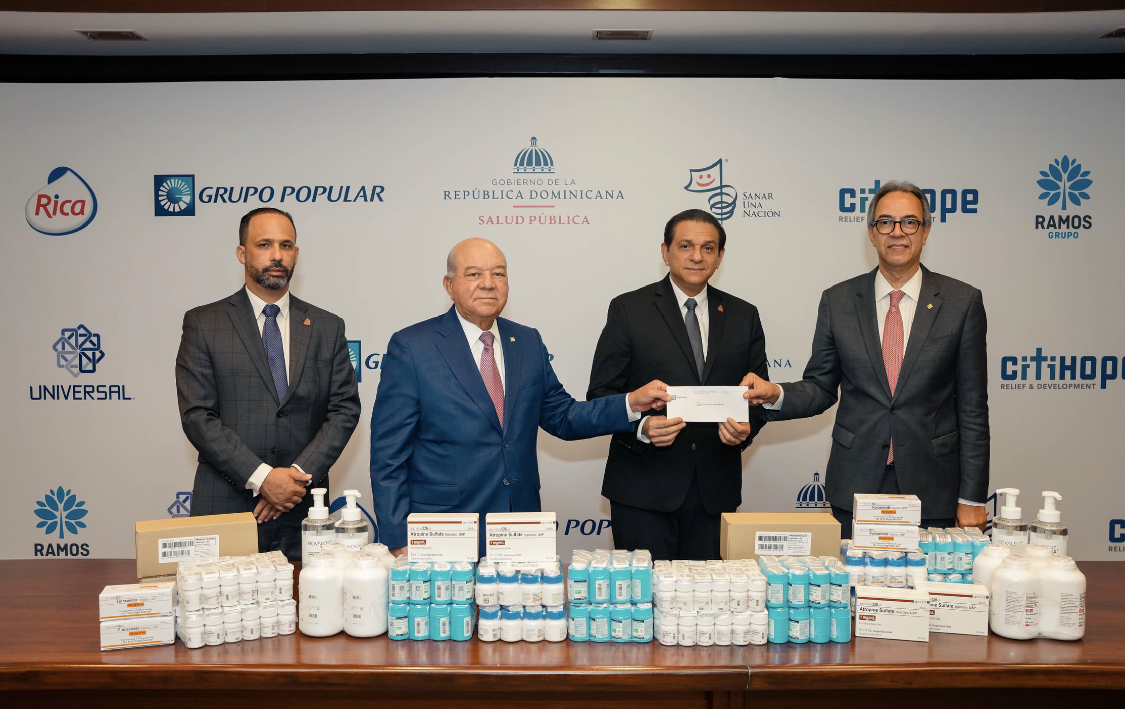 El anuncio de la entrega de los medicamentos fue realizado en una actividad celebrada en la Torre Popular, sede del Grupo Popular y del Banco Popular Dominicano, entre otras filiales.