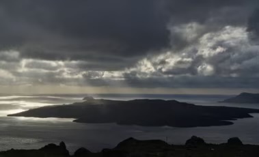 Santorini adquirió su forma actual en forma de media luna después de una masiva erupción volcánica en la antigüedad, una de las erupciones más grandes conocidas en la historia humana. Ahora, millones de visitantes cada año ven su paisaje de casas encaladas e iglesias con cúpulas azules aferradas al borde de la caldera.