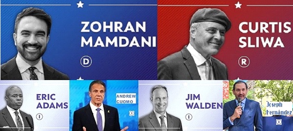 El Partido Demócrata escogió a su candidato, el asambleísta estatal por Queens, Mamdani, de ideología socialdemócrata, tras derrotar a Cuomo. El Republicano tiene como su candidato a Curtis Sliwa, de 71 años, y quien fuera candidato a la misma posición durante las elecciones pasadas.
