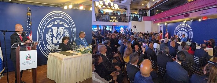 El cónsul Vásquez, al pronunciar su discurso, sostuvo: “rendir homenaje a un hombre cuya trayectoria profesional y humana es motivo de orgullo para todos los dominicanos, especialmente en NY”.