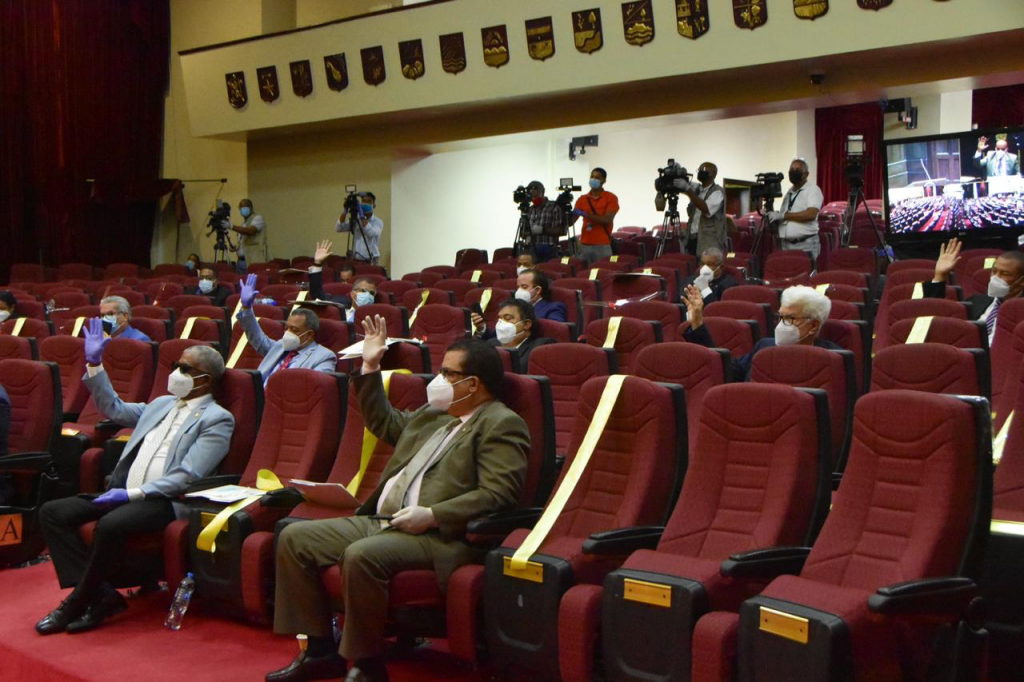 SANTO DOMINGO.-El Senado de la República aprobó en única lectura la resolución que autoriza al presidente de la República a prorrogar hasta por un plazo de 12 días el Estado de Emergencia en todo el territorio nacional, para enfrentar la pandemia del coronavirus.