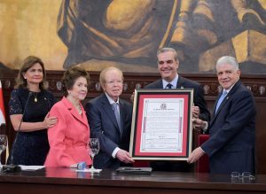 El reconocimiento al empresario José Luis Corripio Estrada (Don Pepín) fue entregado por el presidente de la República, Luis Abinader, la vicepresidenta Raquel Peña y el presidente del Senado de la República,