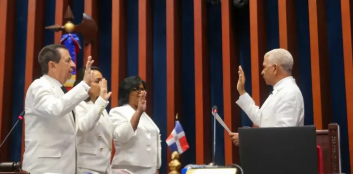 “El sagrado juramento que hemos hecho hoy, ha sido realizado, muy consciente del significado de cada palabra, de la responsabilidad asumida, y con la convicción, de que, junto a ustedes, honorables senadoras y senadores, vamos a trabajar por los mejores intereses de la patria, por el desarrollo del país”, dijo De Los Santos.