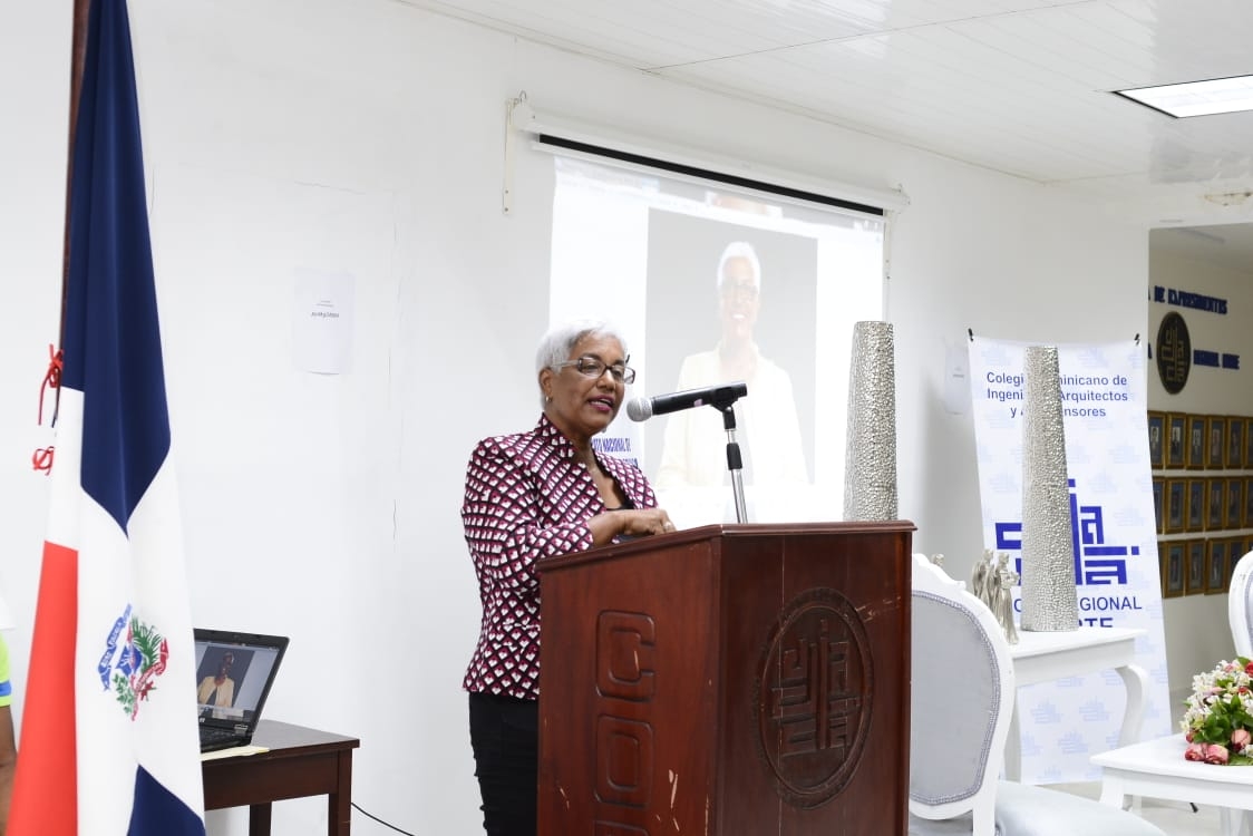 La conducción del acto y posterior intercambio de preguntas con la invitada, recayó en la periodista Grisbel Medina. La actividad se desarrolló en el salón de conferencias del Colegio Dominicano de Ingenieros, Arquitectos y Agrimensores, regional Norte.