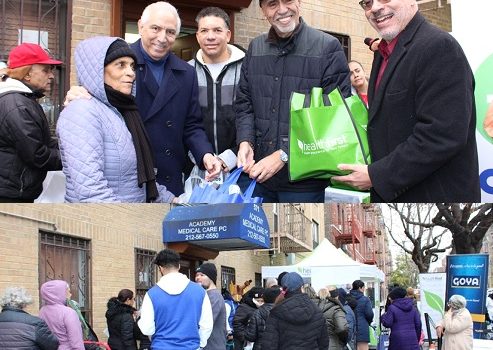 NUEVA YORK.- SOMOS Community Care, una red de más de 2500 proveedores de atención médica en el estado de NY dirigida por el reconocido galeno dominicano Ramon Tallaj, junto a la empresa Goya Foods Inc. en la persona de su ejecutivo Rafael Toro, entregaron este miércoles miles de pavos e igual cantidad de cajas con múltiples alimentos a personas de escasos recursos.