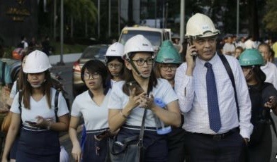 Miles de oficinistas salieron corriendo de los edificios en Manila, muchos con cascos. Se detuvo un servicio de tren elevado, se bajaron los pasajeros y se les hizo caminar hasta las estaciones más cercanas. Varias ciudades se quedaron brevemente sin luz en la principal isla del norte de Luzón, dijeron las autoridades.