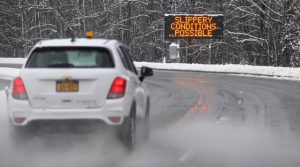 El Servicio Meteorológico Nacional dijo que en Nueva York caían 2 pulgadas (5 centímetros) de nieve por hora o más en elevaciones más altas, en el este de Catskills hasta el medio del valle de Hudson, el centro de Taconics y Berkshires.