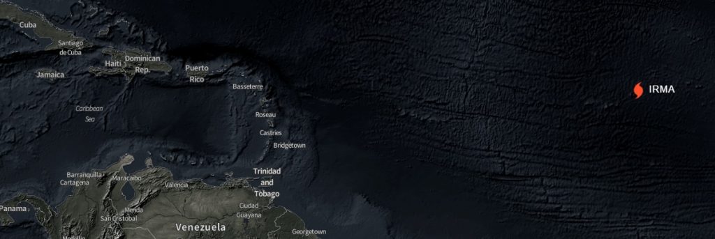 El Centro Nacional de Huracanes especificó que Irma se mueve a 10 millas por hora en el océano Atlántico con vientos sostenidos de 100 millas por hora.