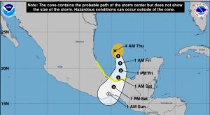 La tormenta se había dirigido despacio al norte antes de que las condiciones meteorológicas cambiaran su rumbo el miércoles por la noche. Se espera que se acerque el viernes por la noche a las costas de Veracruz o Tabasco sin alcanzar fuerza de huracán.