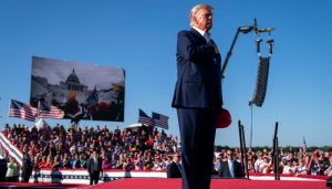 El acto político tuvo lugar un día después de que Trump dejara entrever que no está descartado un espectro de violencia si se convierte en el primer exmandatario que enfrente cargos penales en la historia de Estados Unidos.