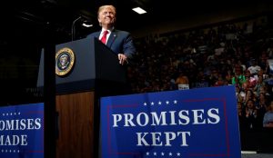 Trump empleó uno de sus característicos actos de campaña en el norte de Indiana para presentar una imagen optimista de su presidencia, apuntando al bajo desempleo y al auge de la creación de empleo y del optimismo durante su mandato.