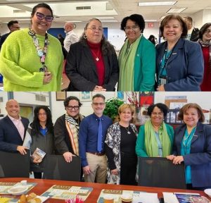 La doctora Encarnación intercambió experiencia, en presencia de la doctora Daisy Cocco De Filipps, presidenta de Hostos, con los siguientes académicos: Nieves Angulo, del departamento de matemáticas; Yoel Rodríguez, de ciencias sociales; Madeline Ford, de la biblioteca; y Catherine García-Bou, manager del Hostos Children Center.