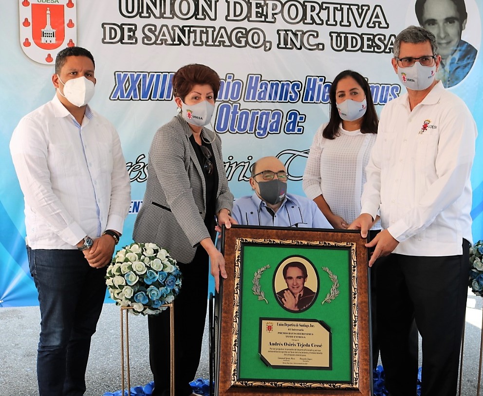 BONAO, Monseñor Nouel,-Una importante delegación de la Unión Deportiva de Santiago, Inc. (UDESA) se trasladó a la ciudad de Bonao donde le fue entregado el XXVIII Premio Hanns Hieronimus al dirigente y periodista Andrés Osiris Tejeda Cessé, durante un fabuloso acto realizado el pasado martes 30 noviembre en la ciudad de Bonao.