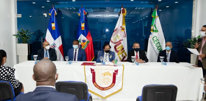 El pacto fue firmado por; doctor Juan Guerrero Ávila, vicerrector de asuntos internacionales, en representación del rector de la UNEV doctor Epifanio González Minaya, el director de CECOMPITE doctor Leonardo Valverde, y James Jacques, cónsul general de la Embajada de Haití en Santiago de los Caballeros.