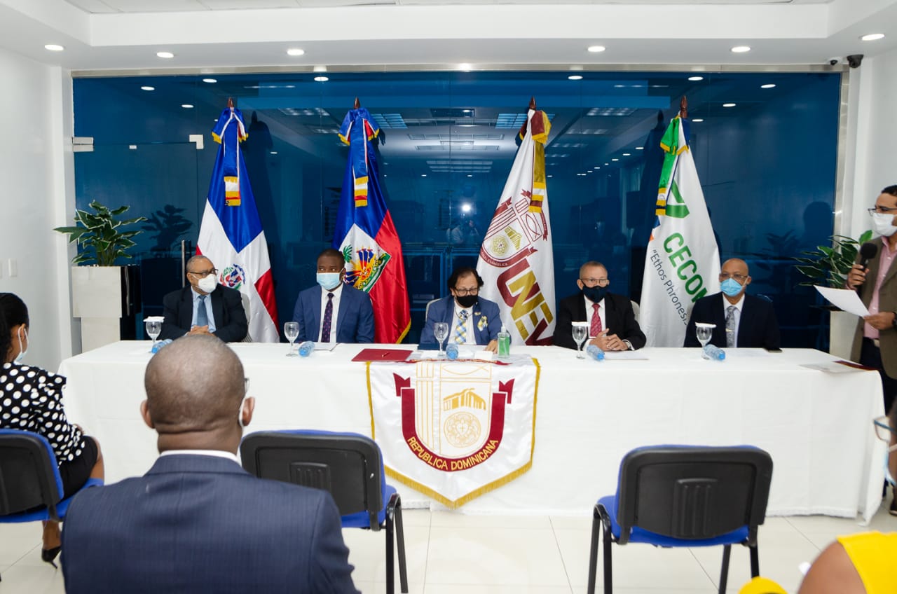 El pacto fue firmado por; doctor Juan Guerrero Ávila, vicerrector de asuntos internacionales, en representación del rector de la UNEV doctor Epifanio González Minaya, el director de CECOMPITE doctor Leonardo Valverde, y James Jacques, cónsul general de la Embajada de Haití en Santiago de los Caballeros.