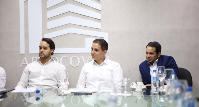 La reunión se efectuó en las instalaciones de APROCOVICI en el segundo nivel del Edificio Empresarial de Santiago, estuvieron presentes el presidente de la Junta Directiva, Alejandro Fondeur Mera; Sandy Rodríguez, vicepresidente; además Natali Fernández, Luis Tejada, Mario Bonilla, Gilberto Fernández, Francisco Gómez y Pedro Jiménez.