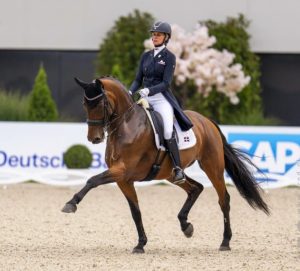 La atleta Creso sobre su yegua Aquamarijn puntuó 71.28% en el gran premio, superando con holgura al segundo clasificado, Benjamin Ebeling con 69.78%.