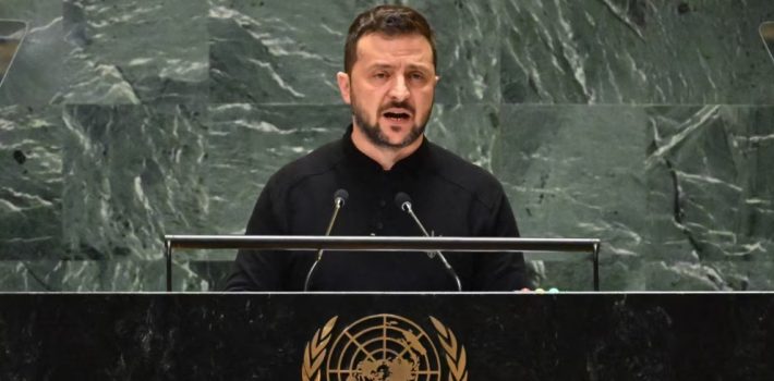 «Cuando algunos proponen alternativas, planes de solución poco entusiastas, los llamados conjuntos de principios, no solo ignoran los intereses y el sufrimiento de los ucranianos… no solo ignoran la realidad, sino que también le dan Putin el espacio político para continuar la guerra», dijo Zelenskiy al pleno de la ONU.
