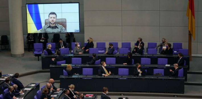 El presidente ucraniano, Volodymyr Zelenskyy, pidió la ayuda de Alemania el jueves y le dijo al Parlamento alemán que se está construyendo un nuevo muro en Europa «entre la libertad y la esclavitud».