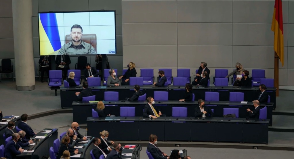 El presidente ucraniano, Volodymyr Zelenskyy, se dirigió el jueves al parlamento de Alemania. Ayer habló a los legisladores estadounidenses.